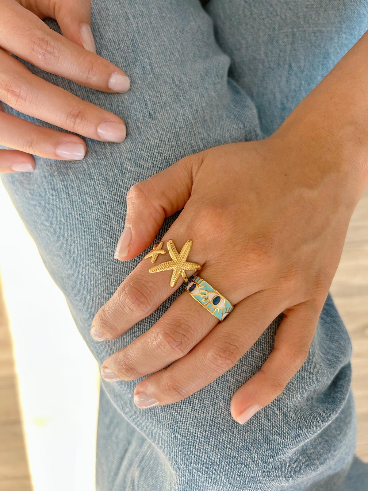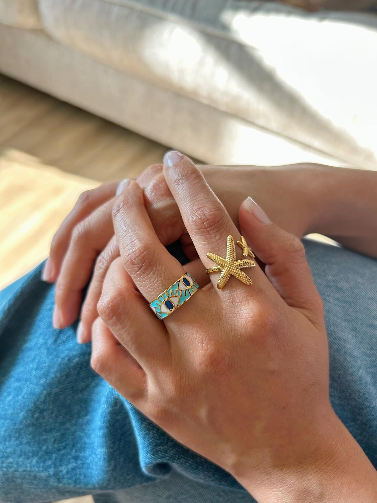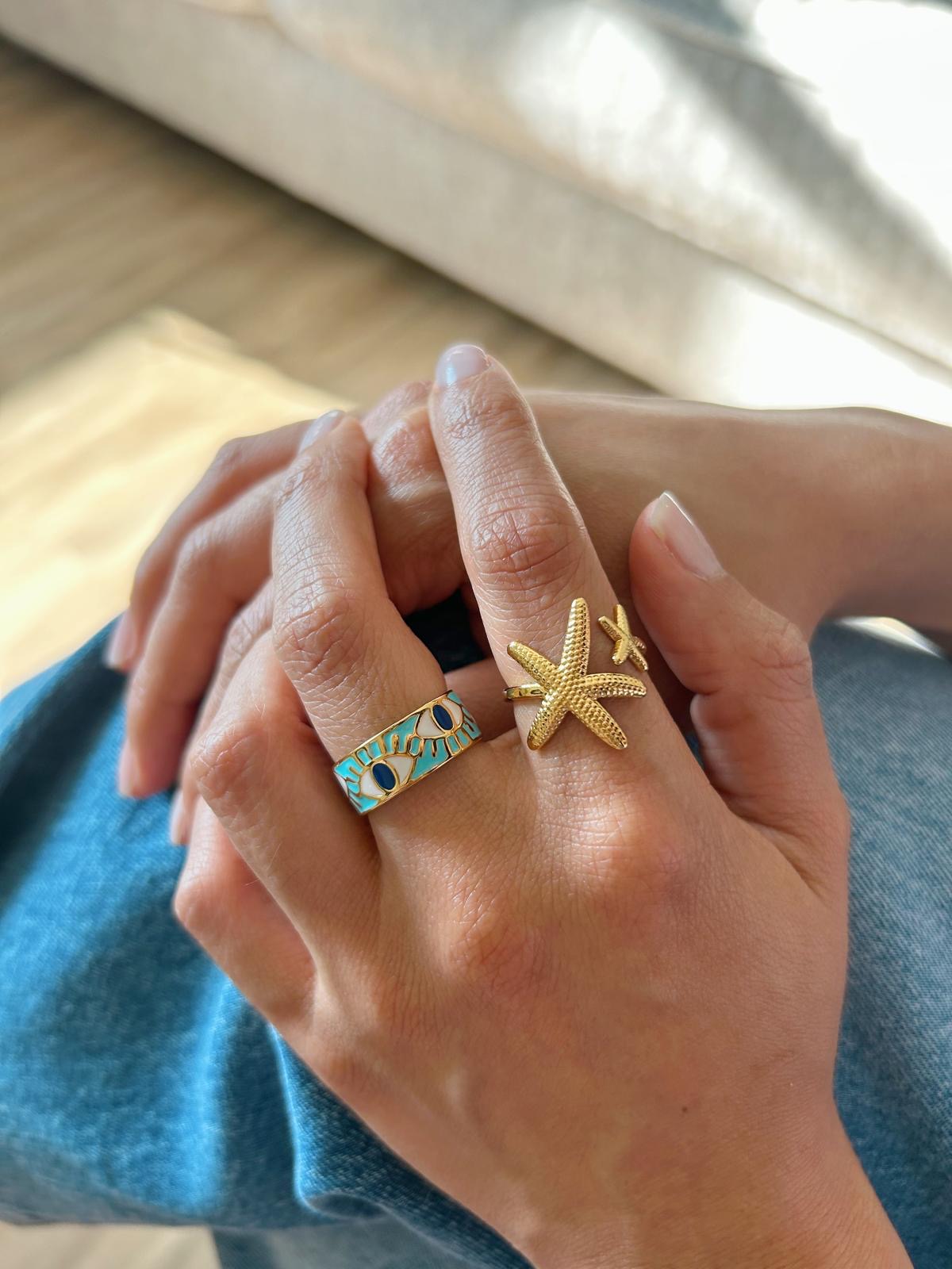 • Iconic evil eye ring design for protection and good luck