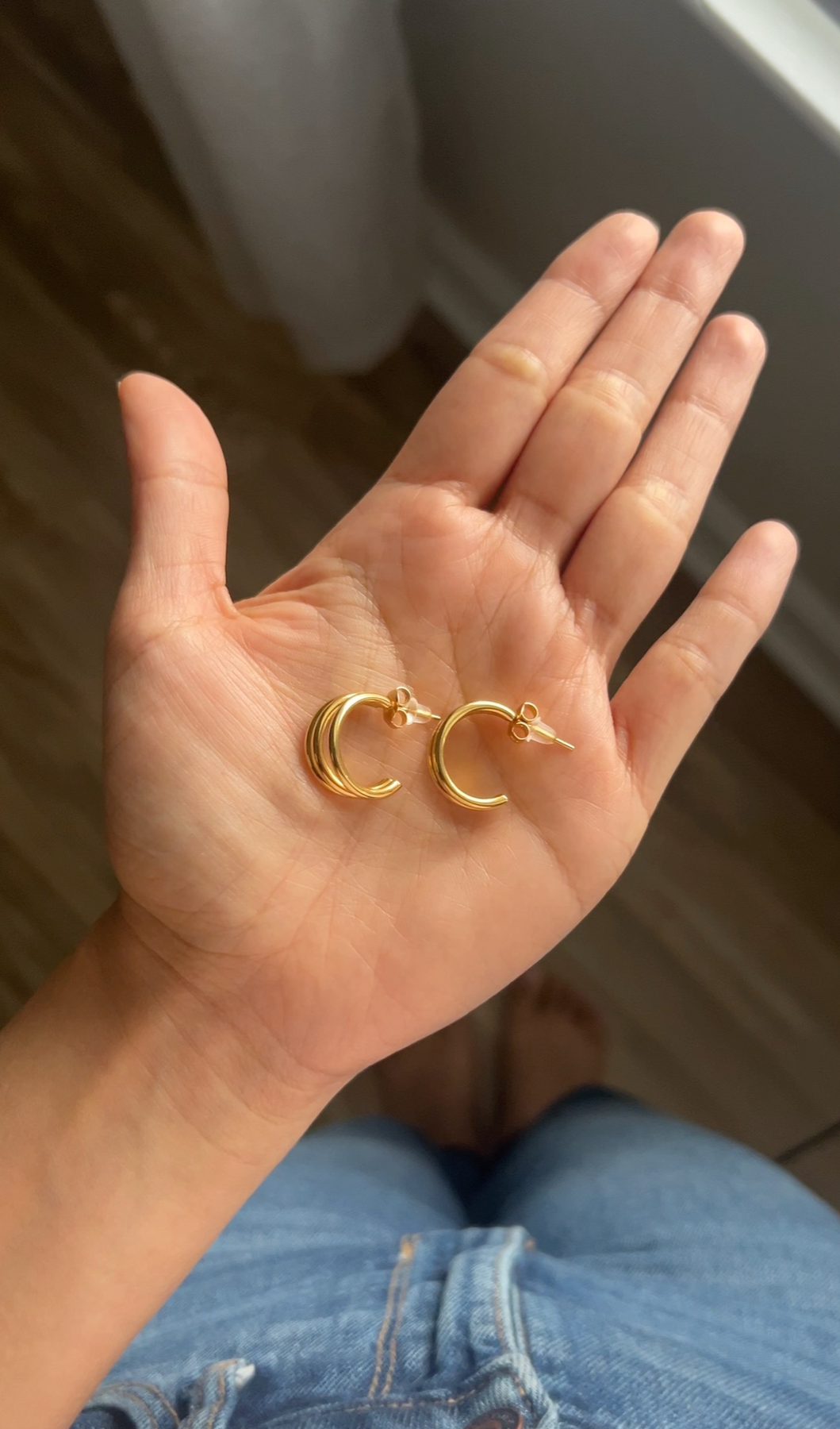 Our Gold-Plated Triple Huggie Earrings are crafted to make a statement while remaining timeless. Designed with three perfectly layered hoops, these earrings sit snugly on the ear, creating a rich, dimensional look that feels both modern and refined.