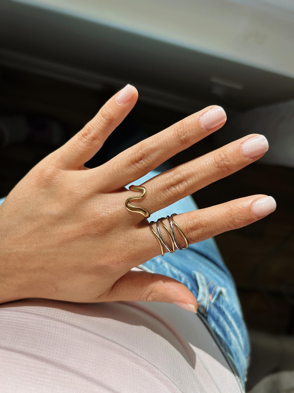 Designed with an adjustable open band, it offers a flexible fit and all-day comfort. Whether you wear it on its own or stacked with your favorite rings, this minimalist ring adds subtle structure and edge to any outfit.